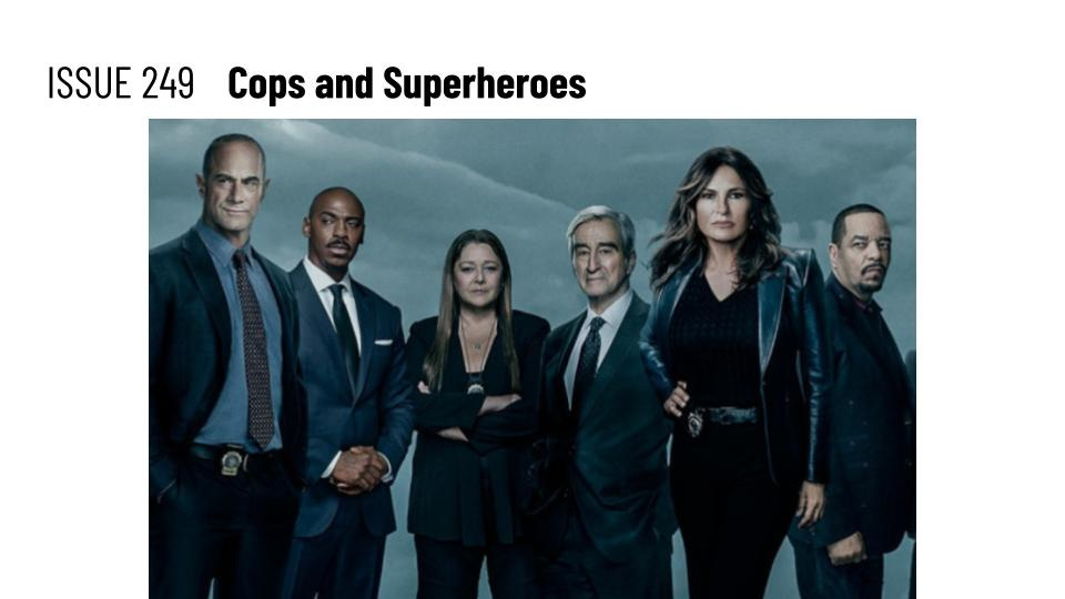 Issue #249: Cops and SuperheroesMiguelNov 15, 2022∙ Paid2ShareThis is a newsletter in its classic style. Short, sweet, and focused on stuff I saw last week. Next edition of the Audio Supplement tentatively dropping next week.This post is for paid subscribersSubscribeAlready a paid subscriber? Sign in