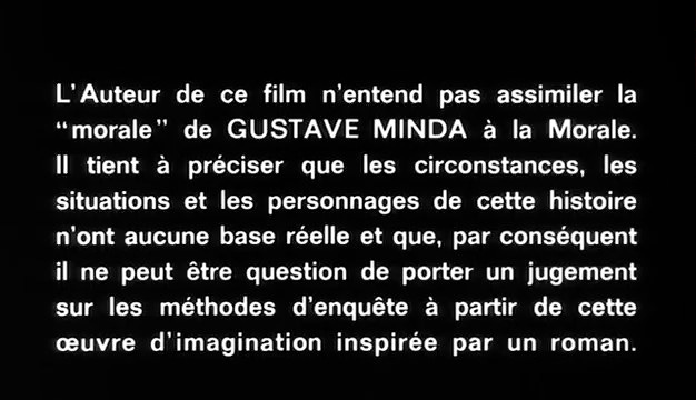 It’s not the filmmaker’s intention to defend Gustave Minda’s ethical code. Persons and circumstances portrayed herein have no basis in fact and therefore no judgment is called for regarding the police methods portrayed in this work of fiction based on a novel.
