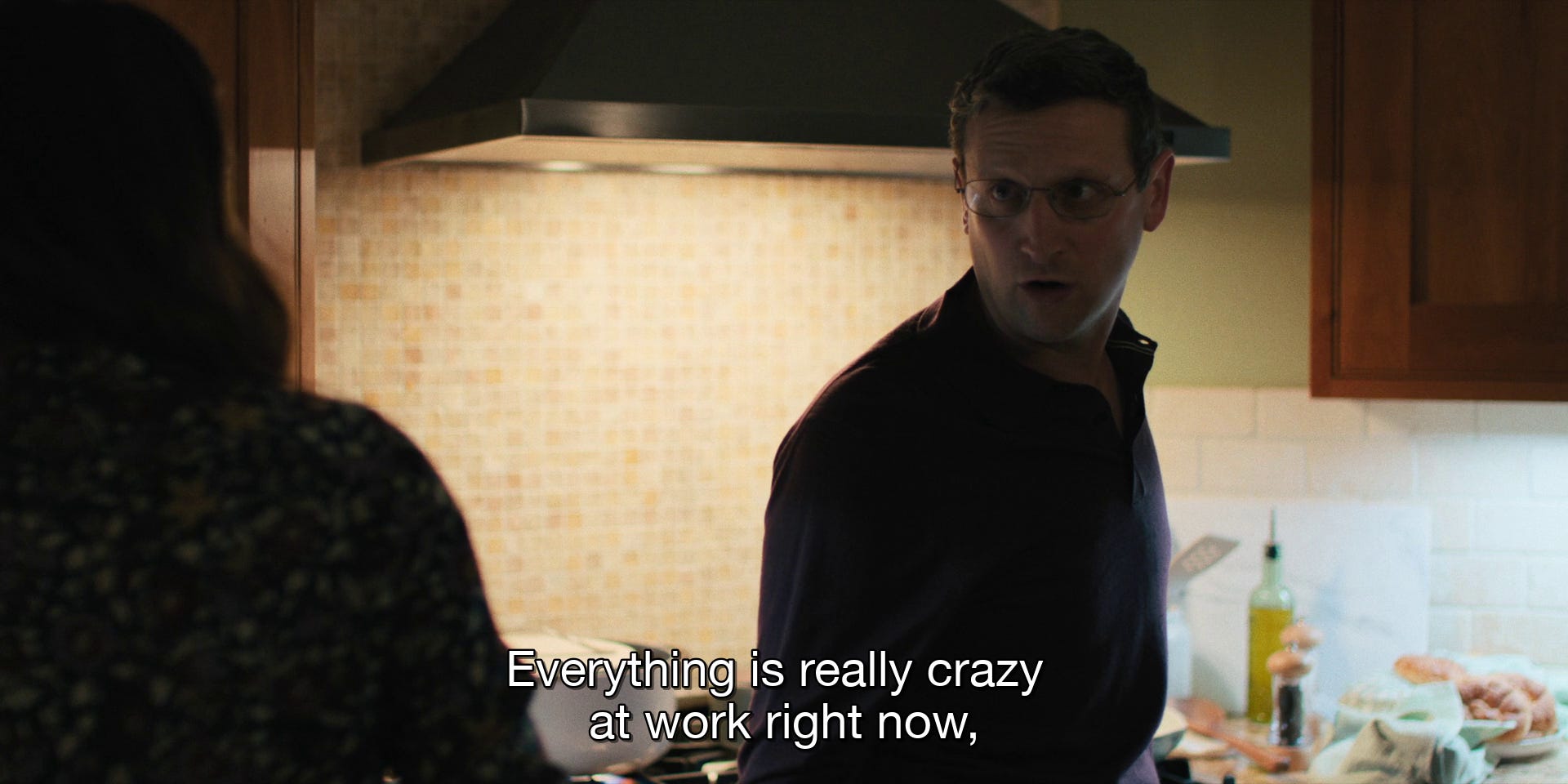 Anxiety is an impediment for Trosper. Indeed, it impedes him at the level of thought. The recurrences of his fall return unexpectedly, crowding out the possibility of thinking anything else. While he should focus on his son’s basketball scouting or his daughter’s imminent marriage, his falling out of the chair prevents even that. The show does a great job of conveying this. In one scene, Trosper is lying awake as the camera pans downward into a repetition of his falling from a much closer angle than when the audience first sees it.