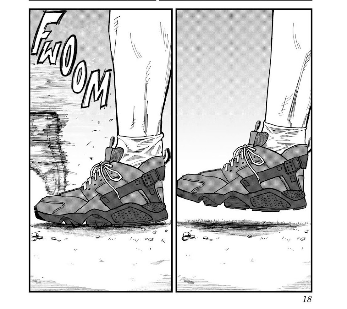 100 Meters is full of detailed reproductions of actual sporting gear from Oakley to Nike to Adidas. In the manga, though noticeably absent from the anime, there are unbranded Nike Huaraches. Do people run in those?