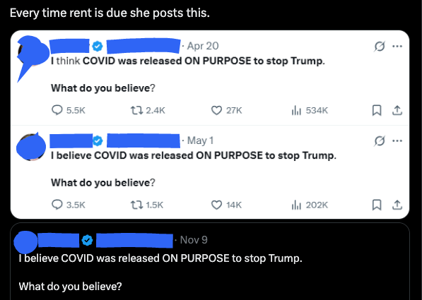 These patterns have become so obvious on twitter, posts that have the quality of “engagement farming” or “bait” appear to coincide with the first of the month.