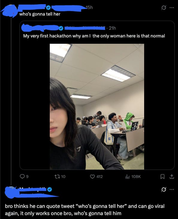 Verified checkmark, controversial or confusing post, and close to the turning of the month have become a reliable heuristic for sussing out bait. Because twitter has introduced payment for viral tweets for those who are verified, the incentives are clear. Pay for verification, post something that gets a lot of interaction, and get paid.