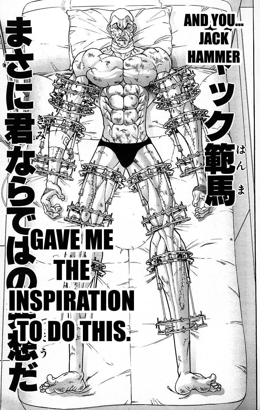 After losing to Baki (of course), Jack abandons drugs and instead undergoes surgery to extend his arms and legs.