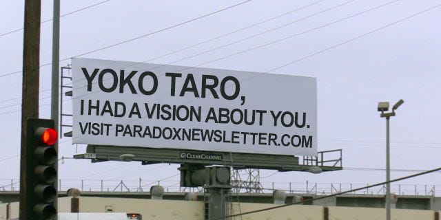 Yoko Taro is working on the new Evangelion while getting the newsletter in his inbox. I thought about the power this might give me. Could I move the needle on the series? Write something to imbed some unconscious suggestion about what the future of Evangelion should be?