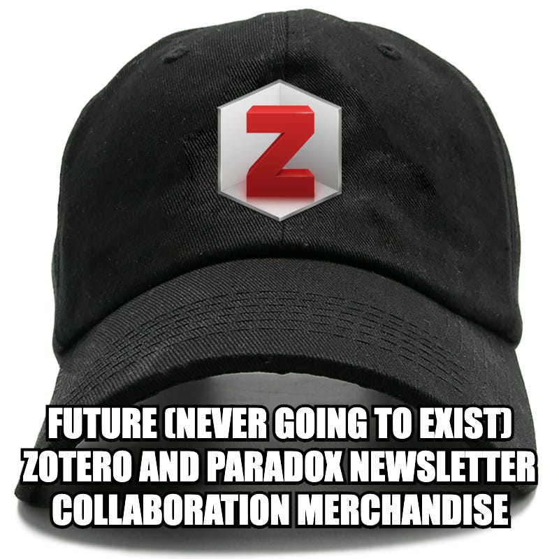 If you are reading this newsletter, you might benefit from using Zotero. I’ve been using it since 2014, but I have been digging into its less obvious features over the past month. Zotero’s website describes it as “a free, easy-to-use tool to help you collect, organize, annotate, cite, and share research.” I’ve been using it for most of these things for a long time, but their description undersells just how great it is as a tool for annotation and PDF reading.