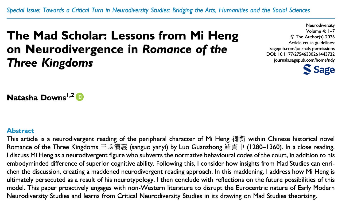 https://journals.sagepub.com/doi/full/10.1177/27546330261443722 — Another open access academic work, this time a journal article, I’m willing to read just about any contemporary academic treatment of Romance of the Three Kingdoms (1522).